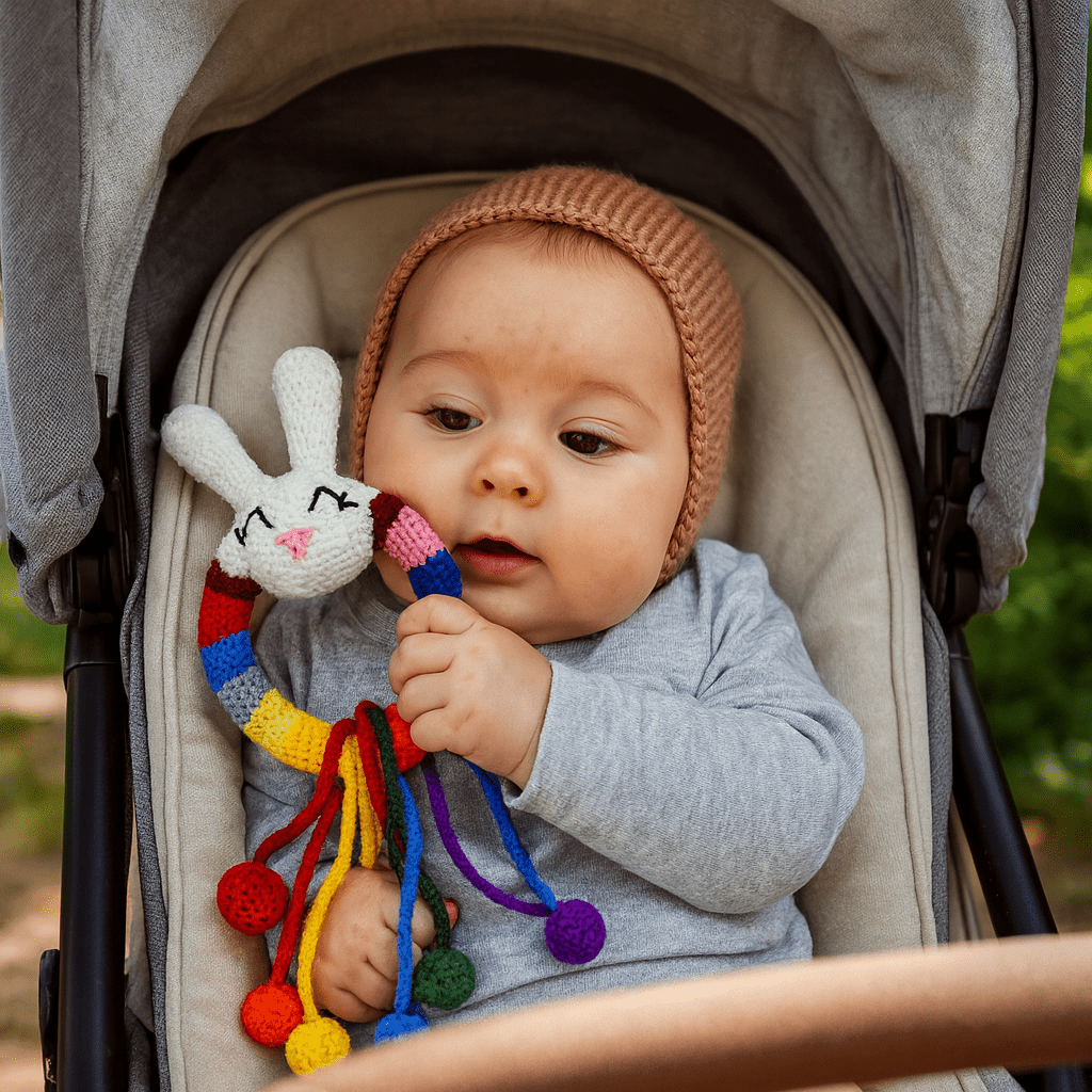 Fröhlicher Häkel-Greifring „Bunny“ – für kleine Hände und große Entdeckerfreude!